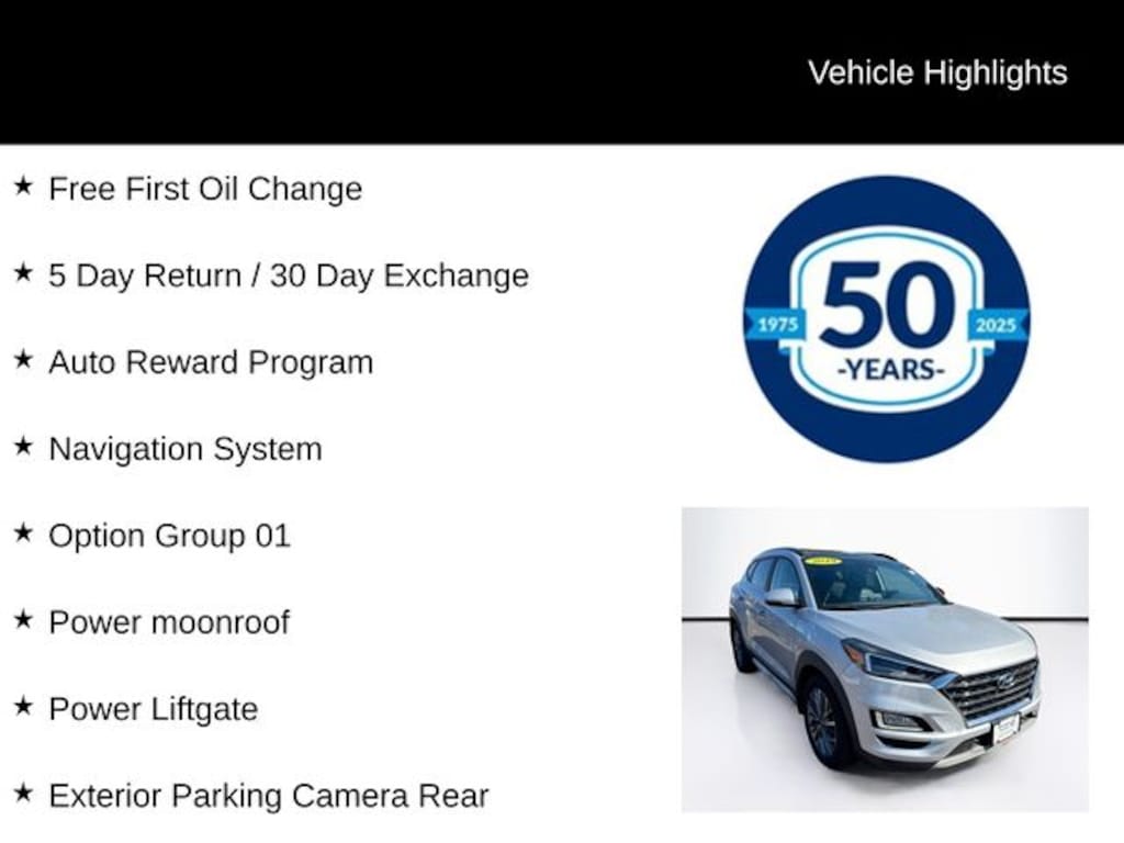 Free First Oil Change, 5 Day Return / 30 Day Exchange, Auto Reward Program, Apple CarPlay & Android Auto, Exterior Parking Camera Rear, Navigation System, Option Group 01, Power Liftgate, Power moonroof, 18" x 7.0J Alloy Wheels, 4-Wheel Disc Brakes, 8 Speakers, ABS brakes, Air Conditioning, Alloy wheels, AM/FM radio: SiriusXM, Auto High-beam Headlights, Auto-dimming Rear-View mirror, Automatic temperature control, Axle Ratio: 3.195, Brake assist, Bumpers: body-color, Cargo Cover, Cargo Net, Carpeted Floor Mats, Delay-off headlights, Driver door bin, Driver vanity mirror, Dual front impact airbags, Dual front side impact airbags, Electronic Stability Control, Emergency communication system: Blue Link, First Aid Kit, Four wheel independent suspension, Front anti-roll bar, Front Bucket Seats, Front Center Armrest, Front dual zone A/C, Front fog lights, Front reading lights, Fully automatic headlights, Garage door transmitter: HomeLink, Heated & Ventilated Front Bucket Seats, Heated door mirrors, Heated front seats, Heated rear seats, Heated steering wheel, Illuminated entry, Leather Seat Trim, Leather Shift Knob, Low tire pressure warning, Mudguards, Occupant sensing airbag, Outside temperature display, Overhead airbag, Overhead console, Panic alarm, Passenger door bin, Passenger vanity mirror, Power door mirrors, Power driver seat, Power passenger seat, Power steering, Power windows, Radio: Infinity Audio System w/Navigation, Rain sensing wipers, Rear anti-roll bar, Rear Bumper Applique, Rear reading lights, Rear seat center armrest, Rear window defroster, Rear window wiper, Remote keyless entry, Roof rack: rails only, Security system, Speed control, Speed-sensing steering, Split folding rear seat, Spoiler, Steering wheel mounted audio controls, Tachometer, Telescoping steering wheel, Tilt steering wheel, Traction control, Trip computer, Turn signal indicator mirrors, Variably intermittent wipers, Ventilated front seats, Apple CarPlay & Android Auto, Exterior Parking Camera Rear, Navigation System, Option Group 01, Power Liftgate, Power moonroof.
