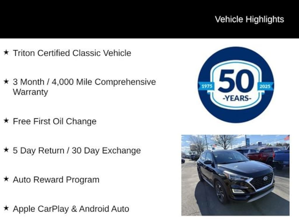 Certified. Certification Program Details: Triton Certified Shield Classic 3-Month or 4,000-Mile Comprehensive Coverage ($100 deductible) 100+ Multipoint Inspection PA State Inspection & Emissions Test Oil, Lube, & Filter Service Completed 5-Day Return Policy1 30-Day Exchange Policy2 CARFAXTM Report AutoRewards Membership See salesperson for additional offers & complete details.