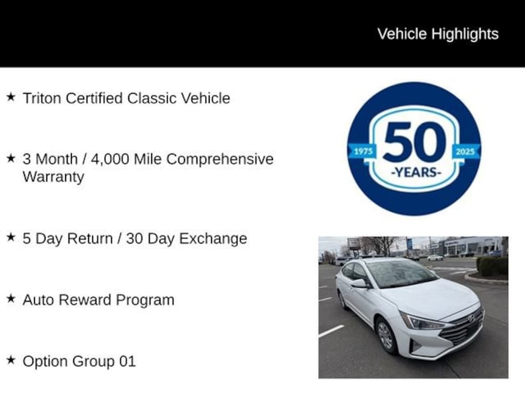 As a Triton Certified Classic Vehicle, this Elantra SE has undergone a rigorous inspection and reconditioning process, ensuring it meets our high standards of quality and reliability. With its efficient 2.0L 4-cylinder engine and CVT transmission, you'll enjoy an impressive 30 city / 40 highway MPG, making it an excellent choice for your daily commute or weekend getaways.