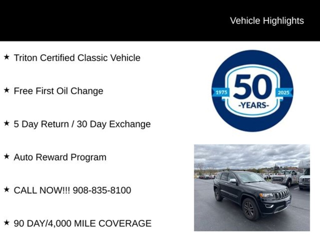 Triton Certified Classic Vehicle, Free First Oil Change, 5 Day Return / 30 Day Exchange, Auto Reward Program, CALL NOW!!! 908-835-8100, 90 DAY/4,000 MILE COVERAGE, 4WD. Recent Arrival! 2017 Jeep Grand Cherokee Limited 3.6L V6 24V VVT 8-Speed Automatic 4WD 4D Sport Utility Diamond Black Crystal Pearlcoat