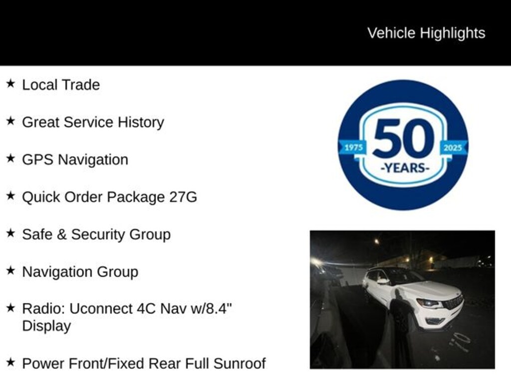 Recent Arrival! 2018 Jeep Compass Limited 2.4L I4 9-Speed Automatic 4WD 4D Sport Utility White Clearcoat Local Trade, Great Service History, 4WD, Apple CarPlay/Android Auto, Blind Spot & Cross Path Detection, GPS Navigation, Heated front seats, Navigation Group, ParkSense Rear Park Assist System, Power Front/Fixed Rear Full Sunroof, Power Liftgate, Quick Order Package 27G, Radio: Uconnect 4C Nav w/8.4" Display, Rain Sensitive/Intermittent Wipers, Safe & Security Group.