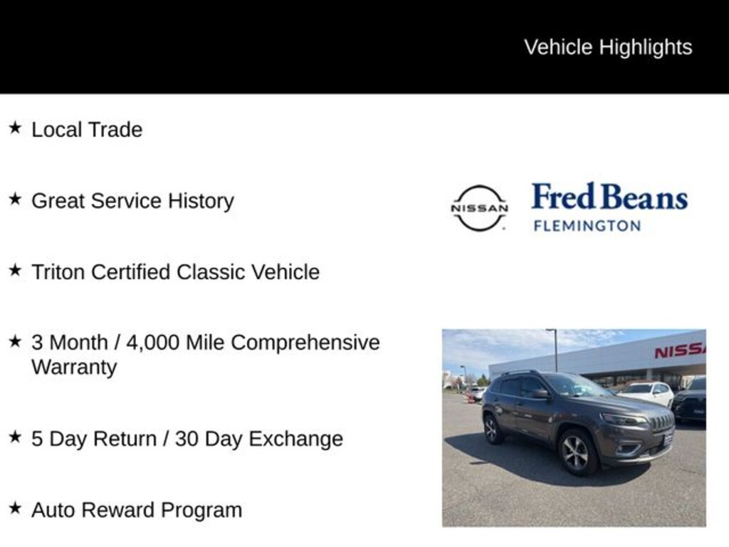 Recent Arrival! 2019 Jeep Cherokee Limited Limited 2.0L I4 DOHC 9-Speed 948TE Automatic 4WD 4D Sport Utility Granite Crystal Metallic Clearcoat Local Trade, Great Service History, Triton Certified Classic Vehicle, 3 Month / 4,000 Mile Comprehensive Warranty, 5 Day Return / 30 Day Exchange, Auto Reward Program.