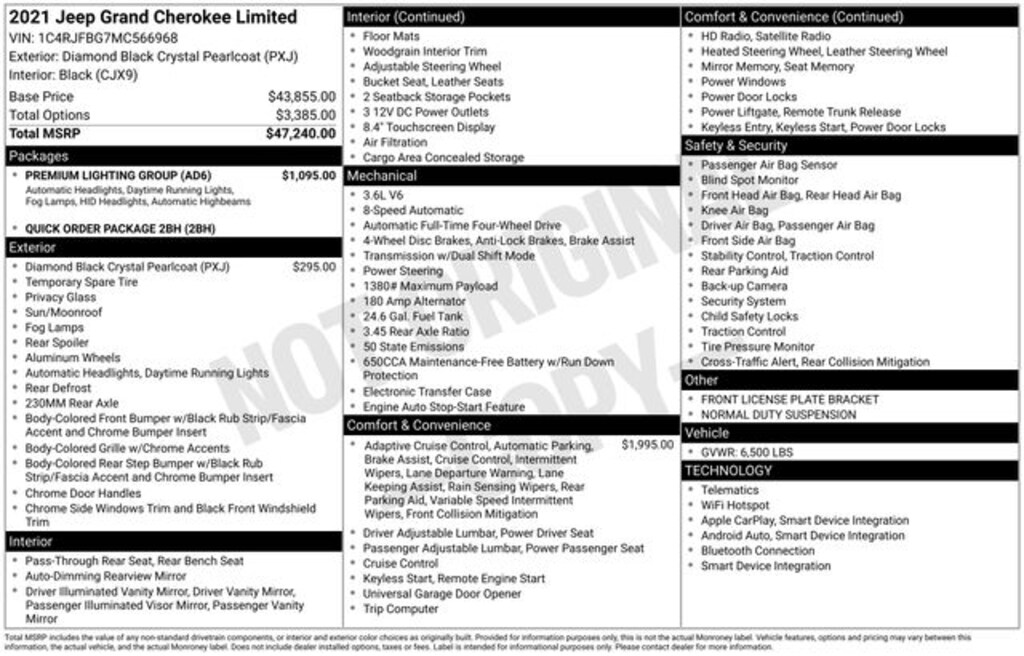 Discover the perfect blend of power, style, and advanced technology in the 2021 Jeep Grand Cherokee Limited. This exceptional SUV is ready to elevate your driving experience and take you on unforgettable adventures.