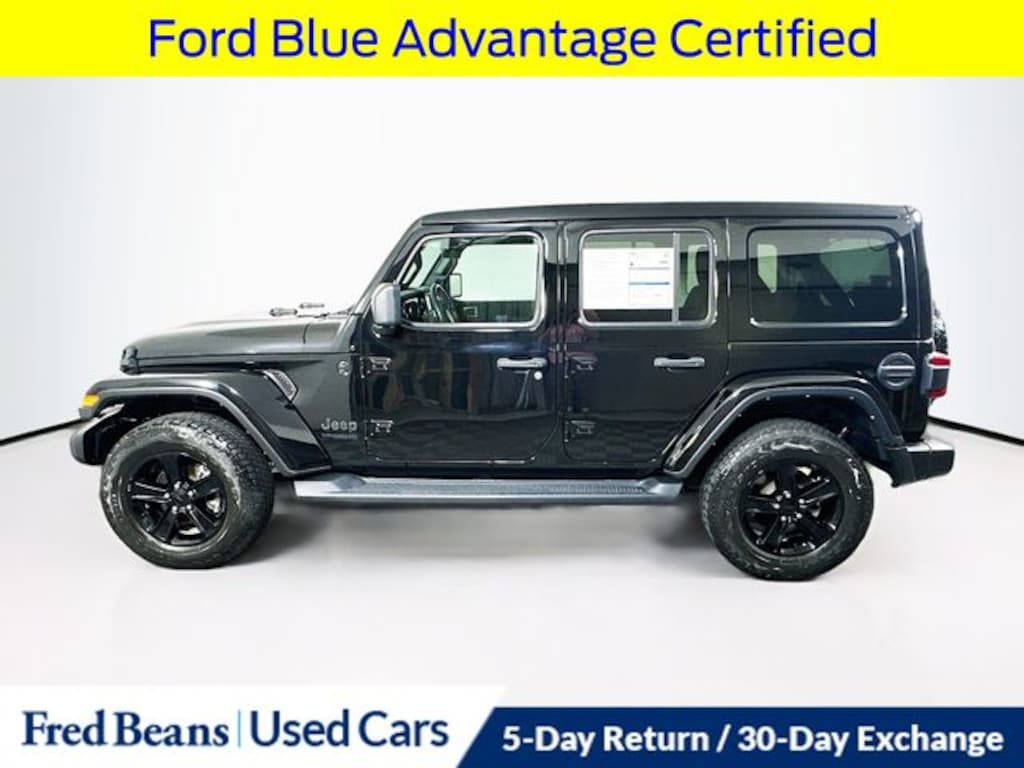 2021 Jeep Wrangler Unlimited Sahara Altitude 2.0L I4 DOHC 8-Speed Automatic 4WD 4D Sport Utility Black Clearcoat Local Trade, 3 Month / 4,000 Mile Comprehensive Warranty, Ford Blue Advantage Certified, 1-Year SiriusXM Guardian Trial, 4G LTE Wi-Fi Hot Spot, 5-Year SiriusXM Traffic Service, 5-Year SiriusXM Travel Link Service, 8.4" Radio & Premium Audio Group, 8.4" Touchscreen Display, Alpine Premium Audio System, Altitude Package, Apple CarPlay/Android Auto, Auto-Dimming Rear-View Mirror, Automatic temperature control, Black Interior Accents, Black Trail Rated Badge, Blind Spot & Cross Path Detection, Body Color 3-Piece Hard Top, Body Color Grille w/Gloss Black Rings, Cold Weather Group, Daytime Running Lamps LED Accents, Emergency/Assistance Call, For Details, Visit DriveUconnect.com, Front dual zone A/C, Front fog lights, Front LED Fog Lamps, GPS Navigation, HD Radio, Heated door mirrors, Heated Front Seats, Heated Steering Wheel, Leather Trimmed Bucket Seats, Leather Wrapped Park Brake Handle, Leather Wrapped Shift Knob, LED Lighting Group, LED Premium Reflector Headlamps, LED Taillamps, Matte Black Jeep Badge, Mold In Color Bumper w/Gloss Black, MOPAR Hardtop Headliner, ParkSense Rear Park Assist System, Power door mirrors, Power Top Quarter Window Storage Bag, Power windows, Quick Order Package 22L Altitude, Radio: Uconnect 4C Nav w/8.4" Display, Remote keyless entry, Removable Rear Quarter Windows, Safety Group, SiriusXM Traffic Plus, SiriusXM Travel Link, Sky 1-Touch Power Top, Speed control, Tilt steering wheel, Wheels: 18" x 7.5" Gloss Black Aluminum, Wizard Black Instrument Panel Bezels.