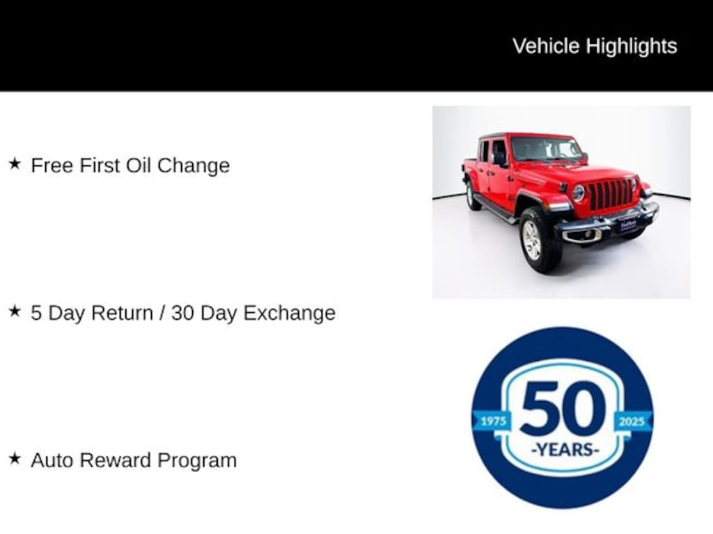 2022 Jeep Gladiator Sport 3.6L V6 24V VVT 8-Speed Automatic 4WD 4D Crew Cab Firecracker Red Clearcoat Free First Oil Change, 5 Day Return / 30 Day Exchange, Auto Reward Program.