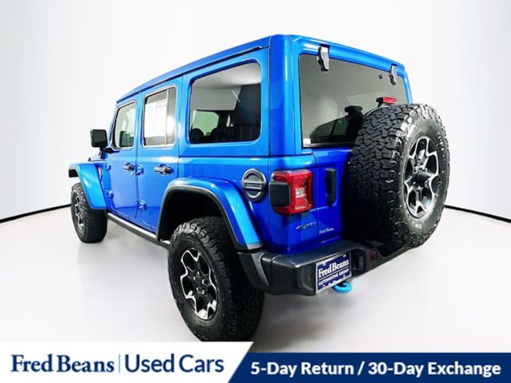 2023 Jeep Wrangler Rubicon 4xe 2.0L I4 DOHC 8-Speed Automatic 4WD 4D Sport Utility Hydro Blue Pearl Coat 2.0L I4 DOHC, ABS brakes, Alloy wheels, Compass, Electronic Stability Control, Front dual zone A/C, Heated door mirrors, Illuminated entry, Low tire pressure warning, Navigation System, ParkView Rear Back-Up Camera, Passenger door bin, Remote keyless entry, Traction control.