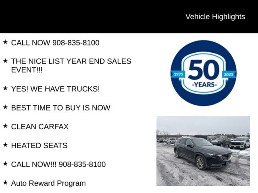 CALL NOW 908-835-8100, THE NICE LIST YEAR END SALES EVENT!!!, YES! WE HAVE TRUCKS!, BEST TIME TO BUY IS NOW, CLEAN CARFAX, HEATED SEATS, CALL NOW!!! 908-835-8100, Auto Reward Program, SOLD AS-IS, AWD. Recent Arrival! 2018 Mazda CX-9 Touring 2.5L 4-Cylinder 6-Speed Automatic AWD 4D Sport Utility Jet Black Mica 20/26 City/Highway MPG