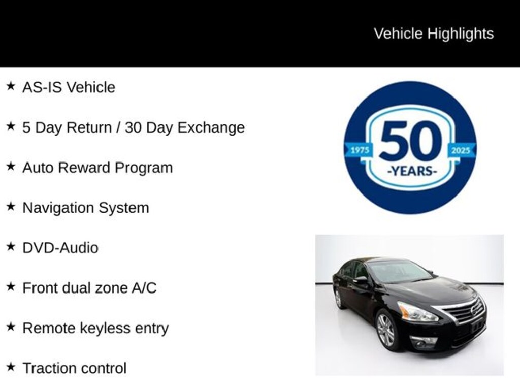 AS-IS Vehicle, 5 Day Return / 30 Day Exchange, Auto Reward Program, ABS brakes, Alloy wheels, DVD-Audio, Electronic Stability Control, Front dual zone A/C, Heated door mirrors, Heated Front Bucket Seats, Heated front seats, Illuminated entry, Low tire pressure warning, Navigation System, Power moonroof, Remote keyless entry, Traction control.