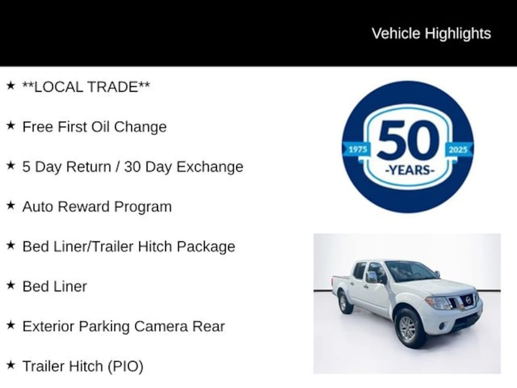 **LOCAL TRADE**, Free First Oil Change, 5 Day Return / 30 Day Exchange, Auto Reward Program, Bed Liner, Bed Liner/Trailer Hitch Package, Exterior Parking Camera Rear, Trailer Hitch (PIO), 16" Alloy Wheels, 3.133 Axle Ratio, 4-Wheel Disc Brakes, 6 Speakers, ABS brakes, Air Conditioning, Alloy wheels, AM/FM radio, Anti-whiplash front head restraints, Bumpers: body-color, Cloth Seat Trim, Driver door bin, Driver vanity mirror, Dual front impact airbags, Dual front side impact airbags, Electronic Stability Control, Floor Mats, Front anti-roll bar, Front Bucket Seats, Front Center Armrest, Front reading lights, Front wheel independent suspension, Illuminated entry, Low tire pressure warning, Occupant sensing airbag, Overhead airbag, Overhead console, Panic alarm, Passenger door bin, Passenger vanity mirror, Power door mirrors, Power steering, Power windows, Radio data system, Radio: AM/FM w/Auxiliary, Rear step bumper, Remote keyless entry, Speed control, Speed-sensing steering, Split folding rear seat, Steering wheel mounted audio controls, Tachometer, Tilt steering wheel, Traction control, Variably intermittent wipers, Voltmeter, Bed Liner, Bed Liner/Trailer Hitch Package, Exterior Parking Camera Rear, Trailer Hitch (PIO).