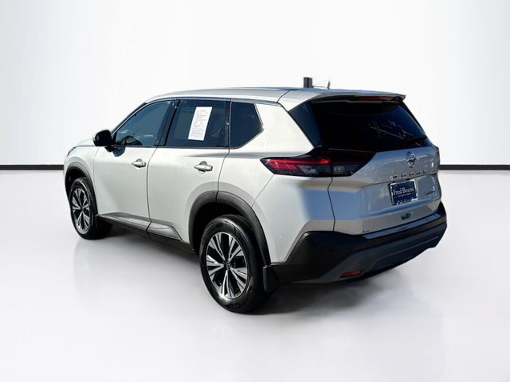 2021 Nissan Rogue SV 2.5L I4 DOHC 16V CVT with Xtronic AWD 4D Sport Utility Brilliant Silver Metallic Triton Certified Vehicle, Remainder of Factory Warranty, Free First Oil Change, Auto Reward Program, 6 Speakers, Front dual zone A/C, Fully automatic headlights, NissanConnect featuring Apple CarPlay and Android Auto, Power driver seat, Rear Parking Sensors, Remote keyless entry, 18" Aluminum Alloy Wheels, 4-Wheel Disc Brakes, 5.604 Axle Ratio, ABS brakes, Air Conditioning, Alloy wheels, AM/FM Radio, AM/FM radio, Auto High-beam Headlights, Automatic temperature control, Black Splash Guards (Set of 4), Brake assist, Bumpers: body-color, Chrome Rear Bumper Protector, Cloth Seat Trim, Delay-off headlights, Driver door bin, Driver vanity mirror, Dual front impact airbags, Dual front side impact airbags, Electronic Stability Control, Emergency communication system: NissanConnect Services, First Aid Kit, Floor Mats w/1-Piece Cargo Area Protector, Four wheel independent suspension, Front anti-roll bar, Front Bucket Seats, Front Center Armrest, Front reading lights, Heated door mirrors, Illuminated entry, Knee airbag, Low tire pressure warning, Occupant sensing airbag, Outside temperature display, Overhead airbag, Overhead console, Panic alarm, Passenger door bin, Passenger vanity mirror, Power door mirrors, Power steering, Power windows, Radio data system, Rear anti-roll bar, Rear seat center armrest, Rear side impact airbag, Rear window defroster, Rear window wiper, Security system, Speed control, Speed-Sensitive Wipers, Split folding rear seat, Spoiler, Steering wheel mounted audio controls, Tachometer, Telescoping steering wheel, Tilt steering wheel, Traction control, Trip computer, Turn signal indicator mirrors, Variably intermittent wipers, 6 Speakers, Front dual zone A/C, Fully automatic headlights, NissanConnect featuring Apple CarPlay and Android Auto, Power driver seat, Rear Parking Sensors, Remote keyless entry. 25/32 City/Highway MPG