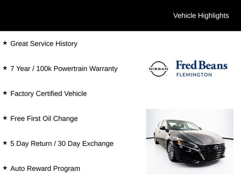 2023 Nissan Altima 2.5 SV 2.5 SV 2.5L 4-Cylinder DOHC 16V CVT with Xtronic FWD 4D Sedan Super Black Clearcoat Great Service History, 7 Year / 100k Powertrain Warranty, Factory Certified Vehicle, Free First Oil Change, 5 Day Return / 30 Day Exchange, Auto Reward Program, CVT with Xtronic.