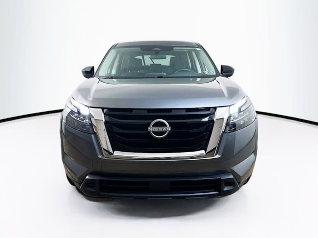 2024 Nissan Pathfinder S 3.5L V6 DOHC 9-Speed Automatic 4WD 4D Sport Utility Gun Metallic 4WD, 3rd row seats: bench, 4-Wheel Disc Brakes, 6 Speakers, ABS brakes, Air Conditioning, Alloy wheels, AM/FM radio: SiriusXM, Auto High-beam Headlights, Automatic temperature control, Axle Ratio: 4.334, Bench Seat Carpeted Floor Mats (Set of 4), Black Splash Guards (Set of 4), Blind Spot Warning, Brake assist, Bumpers: body-color, Cloth Seating Surfaces, Delay-off headlights, Driver door bin, Driver vanity mirror, Dual front impact airbags, Dual front side impact airbags, Electronic Stability Control, Four wheel independent suspension, Front anti-roll bar, Front Bucket Seats, Front Center Armrest, Front dual zone A/C, Front reading lights, Fully automatic headlights, Illuminated entry, Knee airbag, Low tire pressure warning, NissanConnect featuring Apple CarPlay and Android Auto, Occupant sensing airbag, Outside temperature display, Overhead airbag, Overhead console, Panic alarm, Passenger door bin, Passenger vanity mirror, Power door mirrors, Power steering, Power windows, Radio data system, Radio: AM/FM Audio System, Rear air conditioning, Rear anti-roll bar, Rear Parking Sensors, Rear reading lights, Rear side impact airbag, Rear window defroster, Rear window wiper, Reclining 3rd row seat, Remote keyless entry, Security system, Speed control, Speed-sensing steering, Split folding rear seat, Spoiler, Steering wheel mounted audio controls, Tachometer, Telescoping steering wheel, Tilt steering wheel, Traction control, Trip computer, Variably intermittent wipers, Wheels: 18" x 8J Painted Alloy, 4WD.