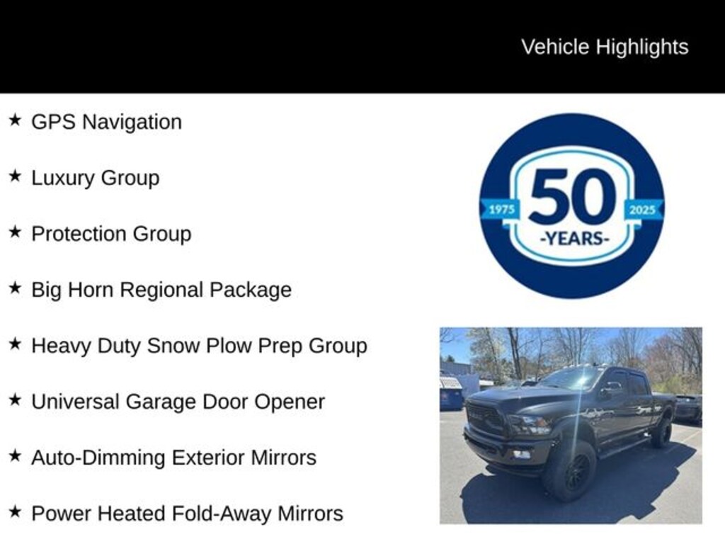 Recent Arrival! 2018 Ram 2500 Big Horn Cummins 6.7L I6 Turbodiesel 6-Speed Automatic 4WD 4D Crew Cab Brilliant Black Crystal Pearlcoat Auto-Dimming Exterior Mirrors, Auto-Dimming Rear-View Mirror, Big Horn Regional Package, Electroluminescent Instrument Cluster, Exterior Mirrors Courtesy Lamps, Exterior Mirrors w/Supplemental Signals, Glove Box Lamp, GPS Navigation, Heavy Duty Snow Plow Prep Group, Leather Wrapped Steering Wheel, Luxury Group, Overhead Console w/Garage Door Opener, Power Folding Mirrors, Power Heated Fold-Away Mirrors, Protection Group, Rear Dome w/On/Off Switch Lamp, Steering Wheel Mounted Audio Controls, Sun Visors w/Illuminated Vanity Mirrors, Universal Garage Door Opener.