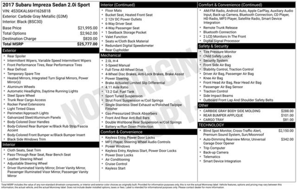 Whether you're looking for a practical daily driver or a versatile weekend companion, this 2017 Subaru Impreza 2.0i Sport is an exceptional choice. With its impressive list of features, outstanding fuel efficiency, and Triton Certified status, this vehicle is sure to exceed your expectations. We invite you to schedule a test drive and experience the exceptional value and performance this Impreza has to offer.