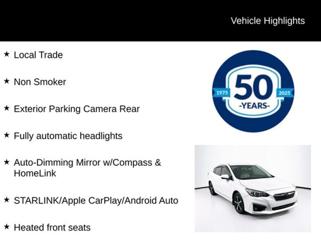 2019 Subaru Impreza 2.0i Premium 2.0L DOHC CVT Lineartronic AWD 4D Sedan Crystal White Pearl Local Trade, Non Smoker, Auto-Dimming Mirror w/Compass & HomeLink, Exterior Parking Camera Rear, Fully automatic headlights, Heated front seats, STARLINK/Apple CarPlay/Android Auto.