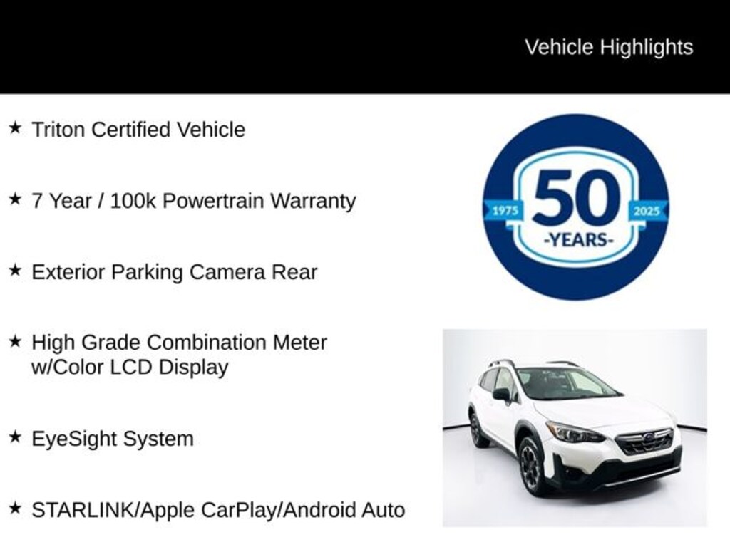2022 Subaru Crosstrek Base 2.0L 4-Cylinder DOHC 16V Lineartronic CVT AWD 4D Sport Utility Crystal White Pearl Triton Certified Vehicle, 7 Year / 100k Powertrain Warranty, Exterior Parking Camera Rear, EyeSight System, High Grade Combination Meter w/Color LCD Display, STARLINK/Apple CarPlay/Android Auto.