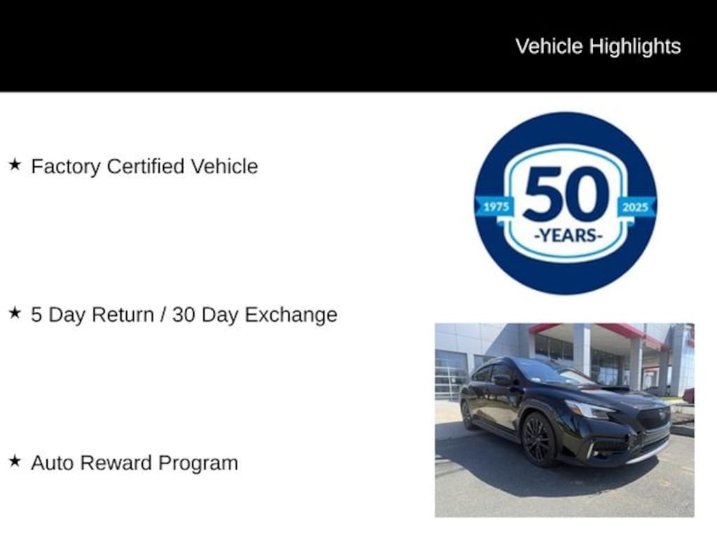 Recent Arrival! 2022 Subaru WRX Limited 2.4L DOHC 6-Speed Manual AWD 4D Sedan Crystal Black Silica Factory Certified Vehicle, 5 Day Return / 30 Day Exchange, Auto Reward Program, WRX Limited, 4D Sedan, 2.4L DOHC, 6-Speed Manual, AWD, Crystal Black Silica, Black w/Ultrasuede Upholstery w/Red Stitching.