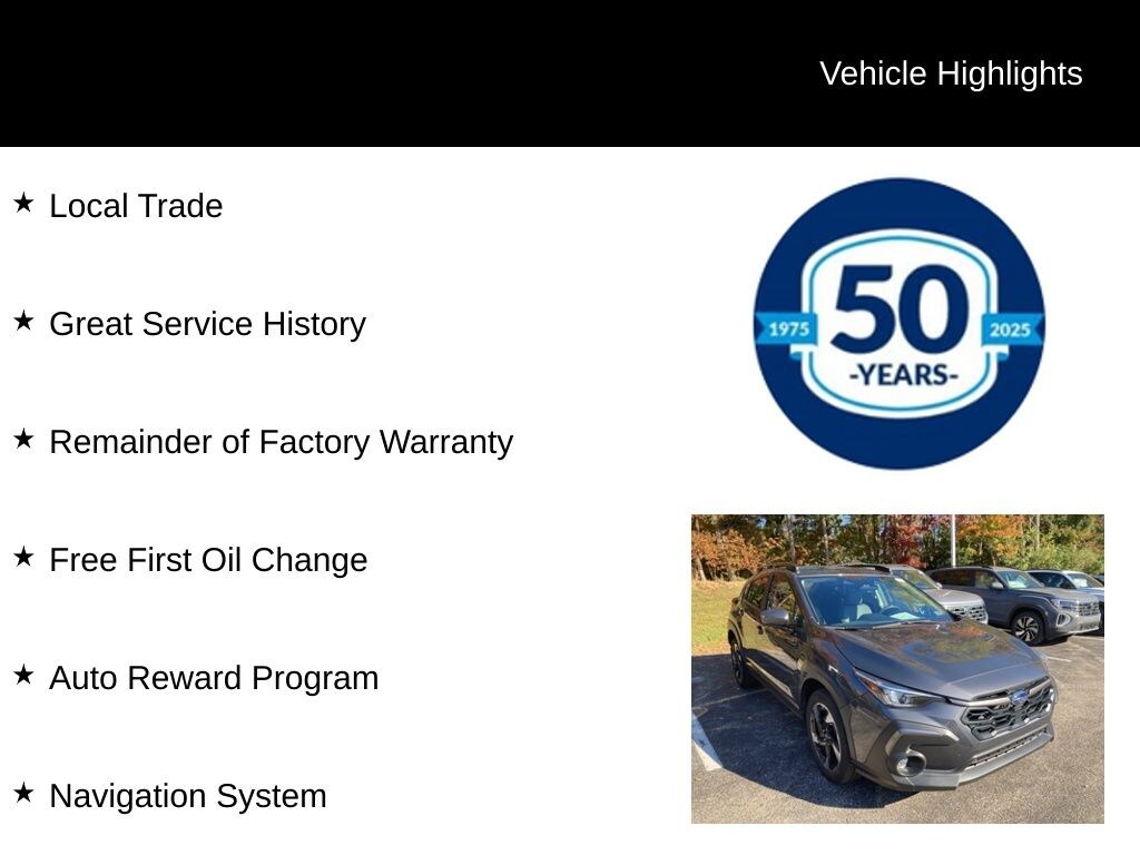 Recent Arrival! 2024 Subaru Crosstrek Limited 2.5L 4-Cylinder DOHC 16V Lineartronic CVT AWD 4D Sport Utility Magnetite Gray Metallic Local Trade, Great Service History, Remainder of Factory Warranty, Free First Oil Change, Auto Reward Program, Navigation System.