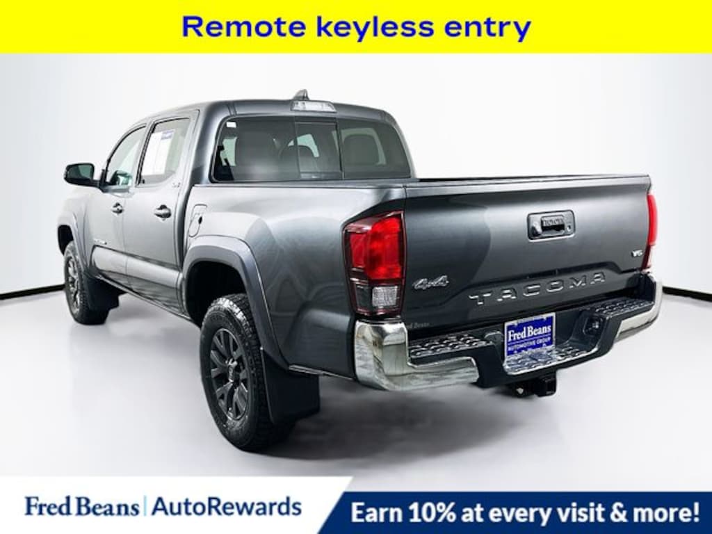 The exterior of this Tacoma is finished in a sleek Gray color, complemented by stylish body-color bumpers and color-keyed overfenders. Inside, you'll find a well-appointed cabin with features like Apple CarPlay/Android Auto, auto-dimming rearview mirror, and a power sliding rear window with privacy glass.