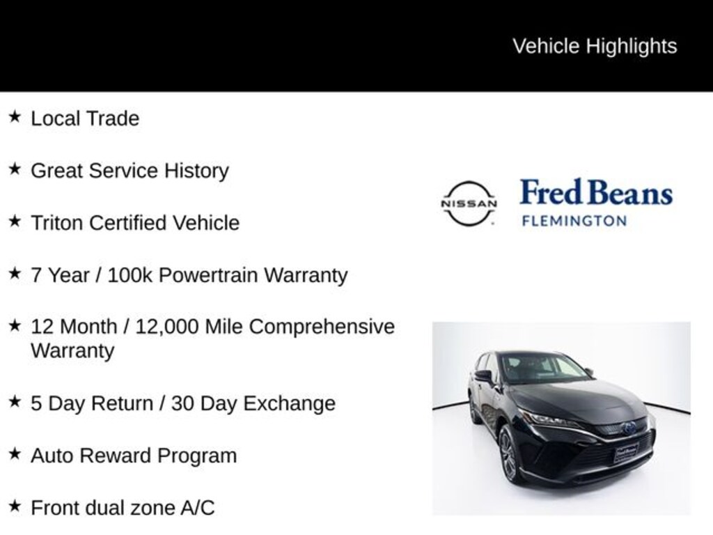 2021 Toyota Venza LE LE 2.5L 4-Cylinder DOHC 16V Continuously Variable (ECVT) AWD 4D Sport Utility Black Local Trade, Great Service History, Triton Certified Vehicle, 7 Year / 100k Powertrain Warranty, 12 Month / 12,000 Mile Comprehensive Warranty, 5 Day Return / 30 Day Exchange, Auto Reward Program, AWD, ABS brakes, Active Cruise Control, Alloy wheels, Electronic Stability Control, Front dual zone A/C, Illuminated entry, Low tire pressure warning, Power Liftgate, Remote keyless entry, Traction control.