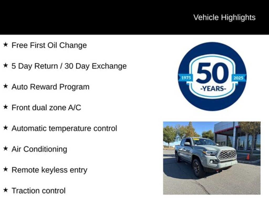 Recent Arrival! 2022 Toyota Tacoma TRD Sport V6 3.5L V6 PDI DOHC 24V LEV3-ULEV70 278hp 6-Speed Automatic 4WD 4D Double Cab Lunar Rock Free First Oil Change, 5 Day Return / 30 Day Exchange, Auto Reward Program, Tacoma TRD Sport V6, 4D Double Cab, 3.5L V6 PDI DOHC 24V LEV3-ULEV70 278hp, 6-Speed Automatic, 4WD, Lunar Rock, Cement w/Fabric Seat Trim (FD), ABS brakes, Active Cruise Control, Air Conditioning, Alloy wheels, Automatic temperature control, Electronic Stability Control, Front dual zone A/C, Heated door mirrors, Illuminated entry, Low tire pressure warning, Remote keyless entry, Traction control.
