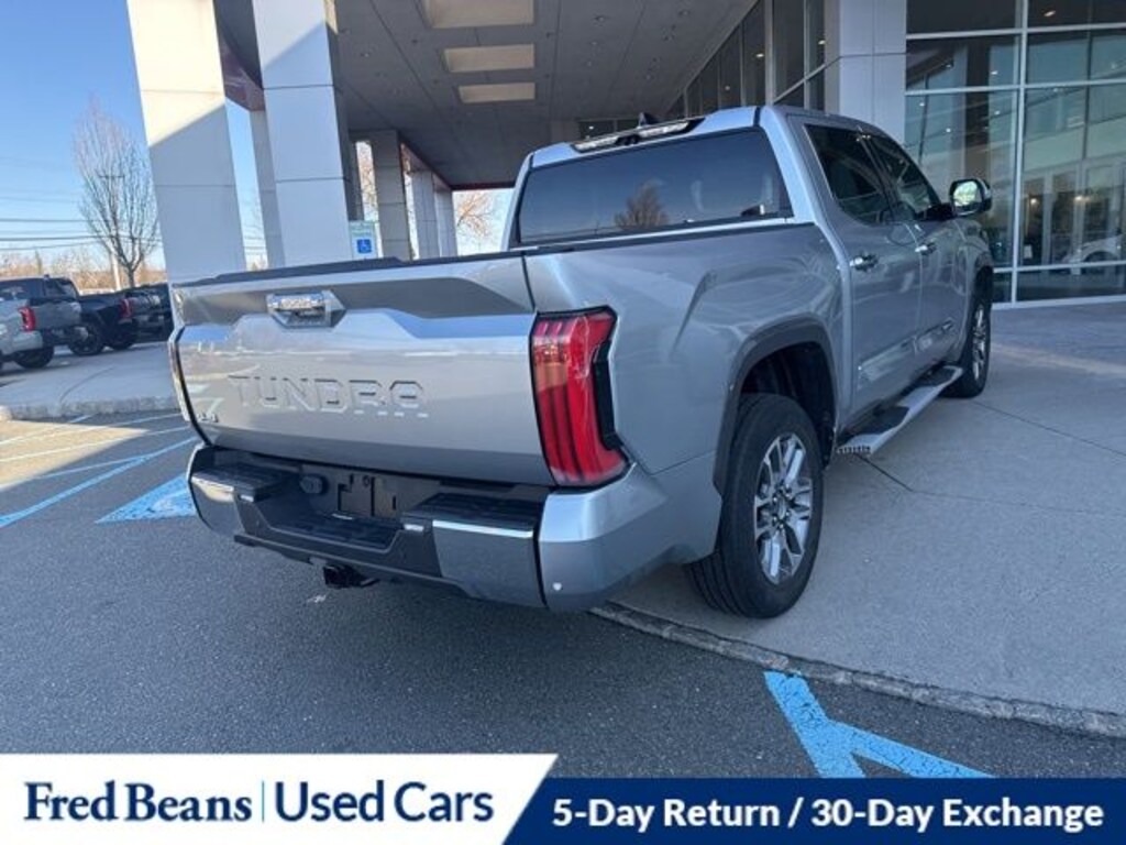 Recent Arrival! 2023 Toyota Tundra Hybrid 1794 Edition 3.4L V6 10-Speed Automatic 4WD 4D Crew Cab Celestial Silver Metallic 5 Day Return / 30 Day Exchange, Auto Reward Program, Tundra Hybrid 1794 Edition, 4D Crew Cab, 3.4L V6, 10-Speed Automatic, 4WD, Celestial Silver Metallic, Saddle Tan w/Leather Seat Trim.