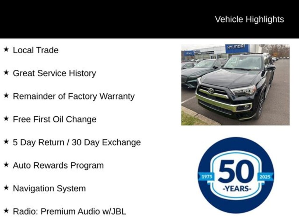 Recent Arrival! 2024 Toyota 4Runner Limited Limited 4.0L V6 DOHC 24V 5-Speed with ECT 4WD 4D Sport Utility Black Local Trade, Great Service History, Remainder of Factory Warranty, Free First Oil Change, 5 Day Return / 30 Day Exchange, Auto Rewards Program, 4WD, Black/Graphite Leather, Alloy wheels, Apple CarPlay/Android Auto, Auto High-beam Headlights, Dual Zone Auto Climate Control, Exterior Parking Camera Rear, Heated door mirrors, Heated front seats, Heated steering wheel, Illuminated entry, Leather Seat Trim, Memory seat, Navigation System, Power door mirrors, Power driver seat, Power moonroof, Radio: Premium Audio w/JBL, Steering wheel mounted audio controls, Turn signal indicator mirrors, Ventilated front seats.