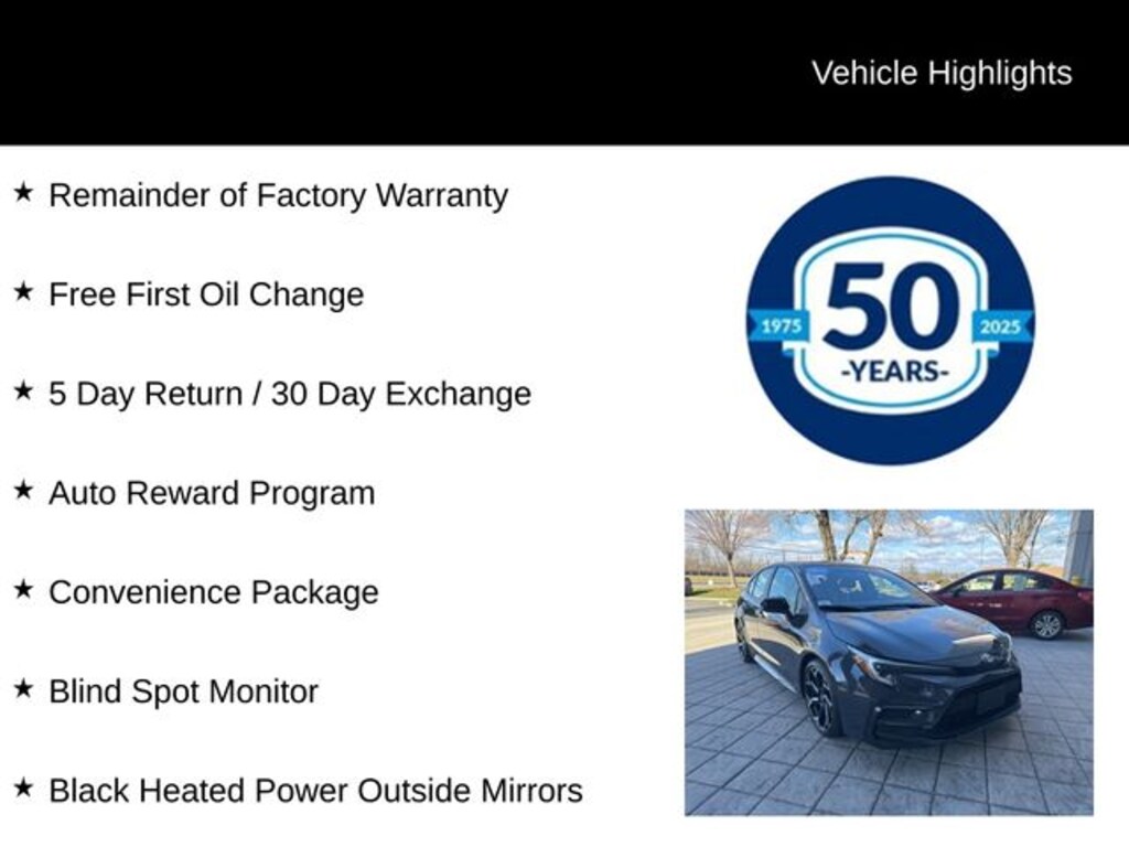 Recent Arrival! 2025 Toyota Corolla FX 2.0L I4 DOHC 16V CVT FWD 4D Sedan Underground Remainder of Factory Warranty, Free First Oil Change, 5 Day Return / 30 Day Exchange, Auto Reward Program, Corolla FX, 4D Sedan, 2.0L I4 DOHC 16V, CVT, FWD, Underground, Moonstone w/Fabric Seat Trim, Black Heated Power Outside Mirrors, Blind Spot Monitor, Convenience Package.