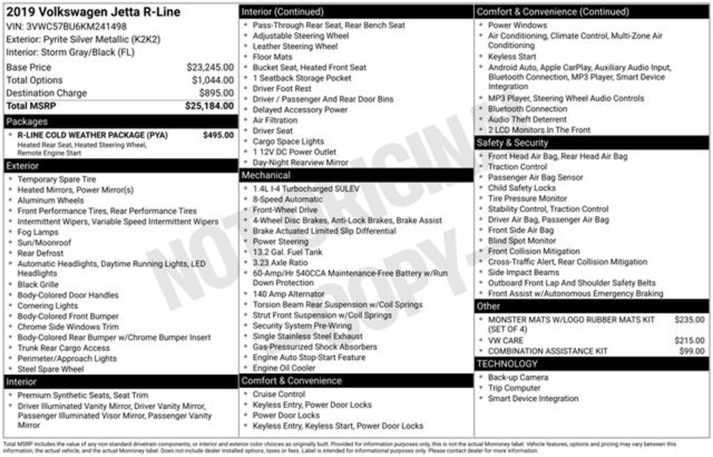 Recent Arrival! 2019 Volkswagen Jetta R-Line 1.4L TSI 8-Speed Automatic with Tiptronic FWD 4D Sedan Silver Metallic 12 Month / 12,000 Mile Comprehensive Warranty, CLEAN CARFAX, WARRANTY INCLUDED, 5 Day Return / 30 Day Exchange, Auto Reward Program, Triton Certified Vehicle, Storm Gray/Black Premium Synthetic, Heated Front Washer Nozzles, Heated R-Line Steering Wheel, Heated Rear Outboard Seating Positions, Lower Windshield Heated Wiper Area, Power moonroof, R-Line Cold Weather Package, Remote Engine Start w/Remote Key Fob, Washer Fluid Level Indicator. 30/40 City/Highway MPG