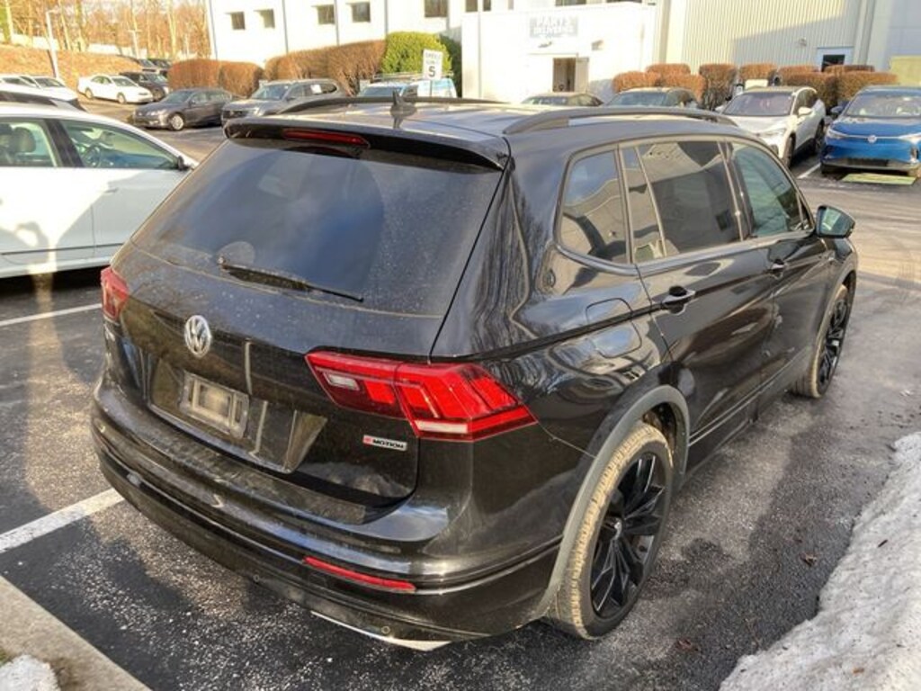 2021 Volkswagen Tiguan 2.0T SE R-Line Black 2.0L TSI DOHC 8-Speed Automatic with Tiptronic AWD 4D Sport Utility Deep Black 21/27 City/Highway MPG 21/27 City/Highway MPG Visit our Website for a Complimentary CarFax Report!!!, Auto Reward Program, AWD, 2-Row Rubber Monster Mats w/Logo Kit (Set of 4), 3.33 Axle Ratio, 4-Wheel Disc Brakes, 4-Wheel Independent Suspension, 6 Speakers, ABS brakes, Air Conditioning, Alloy wheels, AM/FM radio: SiriusXM with 360L, Automatic temperature control, Brake assist, Bumpers: body-color, Compass, Delay-off headlights, Driver door bin, Driver vanity mirror, Dual front impact airbags, Dual front side impact airbags, Electronic Stability Control, Emergency communication system: VW Car-Net services (capabilities require enrollment or subscription), Exterior Parking Camera Rear, First Aid Kit, Forward collision: FCW w/Autonomous Emergency Braking mitigation, Four wheel independent suspension, Frameless Auto-Dimming Rearview Mirror, Front anti-roll bar, Front Bucket Seats, Front Center Armrest, Front dual zone A/C, Front fog lights, Front reading lights, Fully automatic headlights, Heated door mirrors, Heated Front Comfort Seats, Heated front seats, Heavy Duty Trunk Liner w/VW CarGo Blocks, Illuminated entry, Leather Shift Knob, Leather steering wheel, Low tire pressure warning, Occupant sensing airbag, Outside temperature display, Overhead airbag, Overhead console, Panic alarm, Passenger door bin, Passenger vanity mirror, Perforated V-Tex Leatherette Seating Surfaces, Power door mirrors, Power driver seat, Power moonroof, Power steering, Power windows, Radio data system, Radio: MIB3 Composition Media AM/FM/HD, Rear anti-roll bar, Rear reading lights, Rear seat center armrest, Rear window defroster, Rear window wiper, Remote keyless entry, Roadside Assistance Kit, Roof rack: rails only, Security system, Speed control, Speed-sensing steering, Split folding rear seat, Spoiler, Sport steering wheel, Steering wheel mounted audio controls, Tachometer, Telescoping steering wheel, Tilt steering wheel, Traction control, Trip computer, Turn signal indicator mirrors, Variably intermittent wipers, Wheels: 20" Machined Black Alloy, AWD.