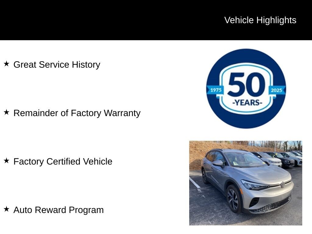 Recent Arrival! 2023 Volkswagen ID.4 Pro Electric Motor Single-Speed Automatic AWD 4D Sport Utility Silver Mist Metallic Great Service History, Remainder of Factory Warranty, Factory Certified Vehicle, Auto Reward Program.