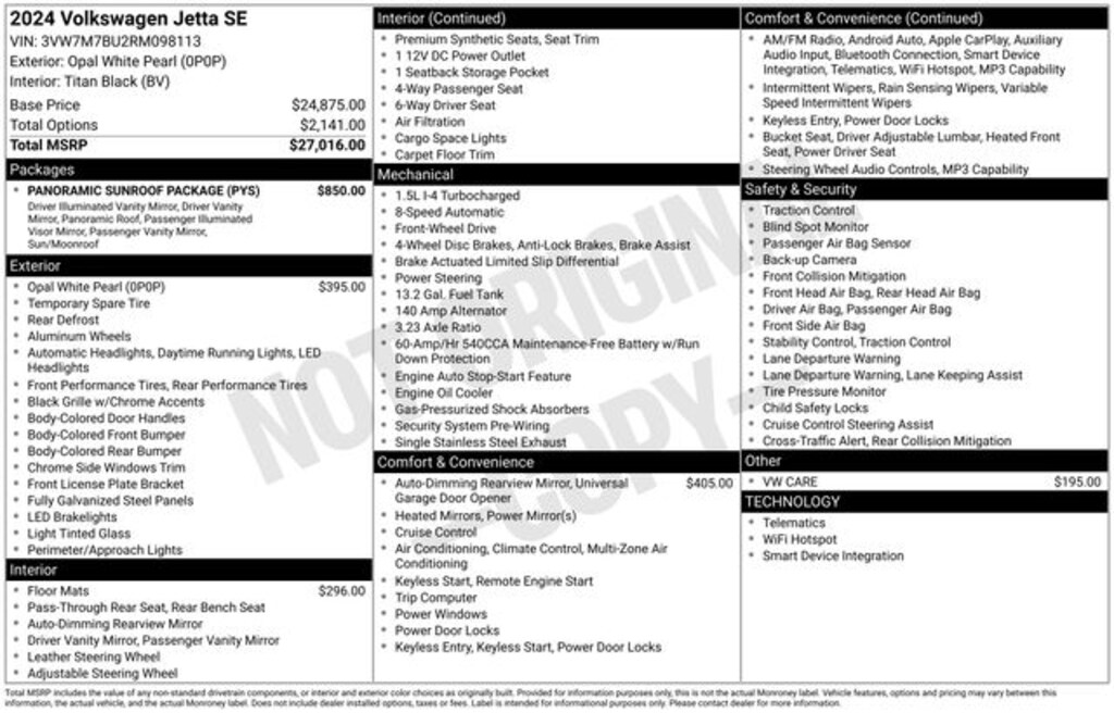 Don't miss out on this opportunity to own a meticulously maintained, one-owner Volkswagen Jetta 1.5T SE. Schedule a test drive today and discover the exceptional value and quality that this vehicle has to offer. We're confident you'll be impressed by its performance, features, and overall driving experience.