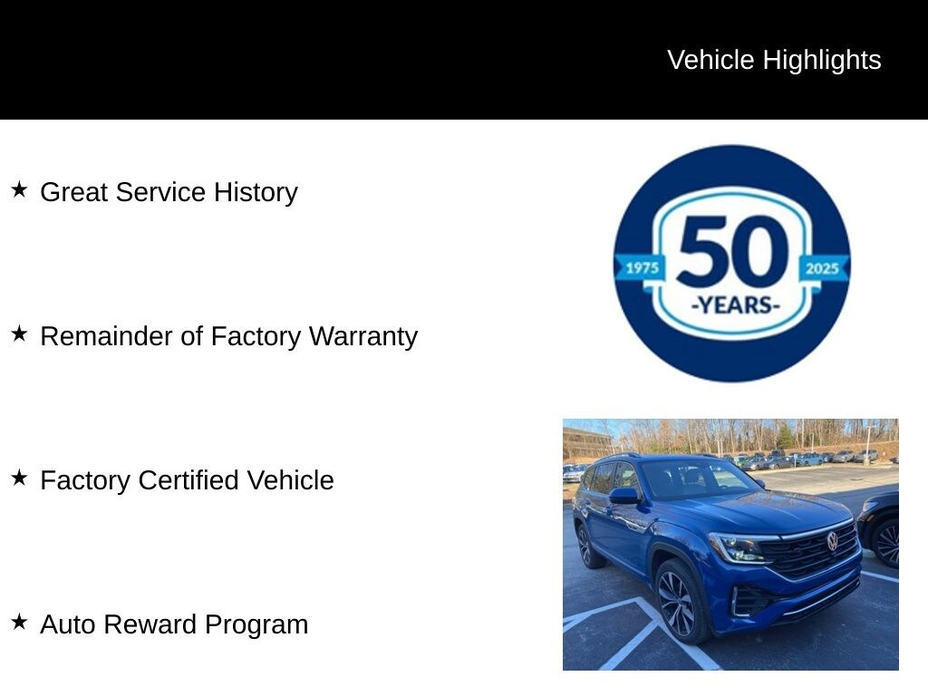 Recent Arrival! 2025 Volkswagen Atlas 2.0T SEL Premium R-Line 2.0L TSI 8-Speed Automatic AWD 4D Sport Utility Mountain Lake Blue Great Service History, Remainder of Factory Warranty, Factory Certified Vehicle, Auto Reward Program.